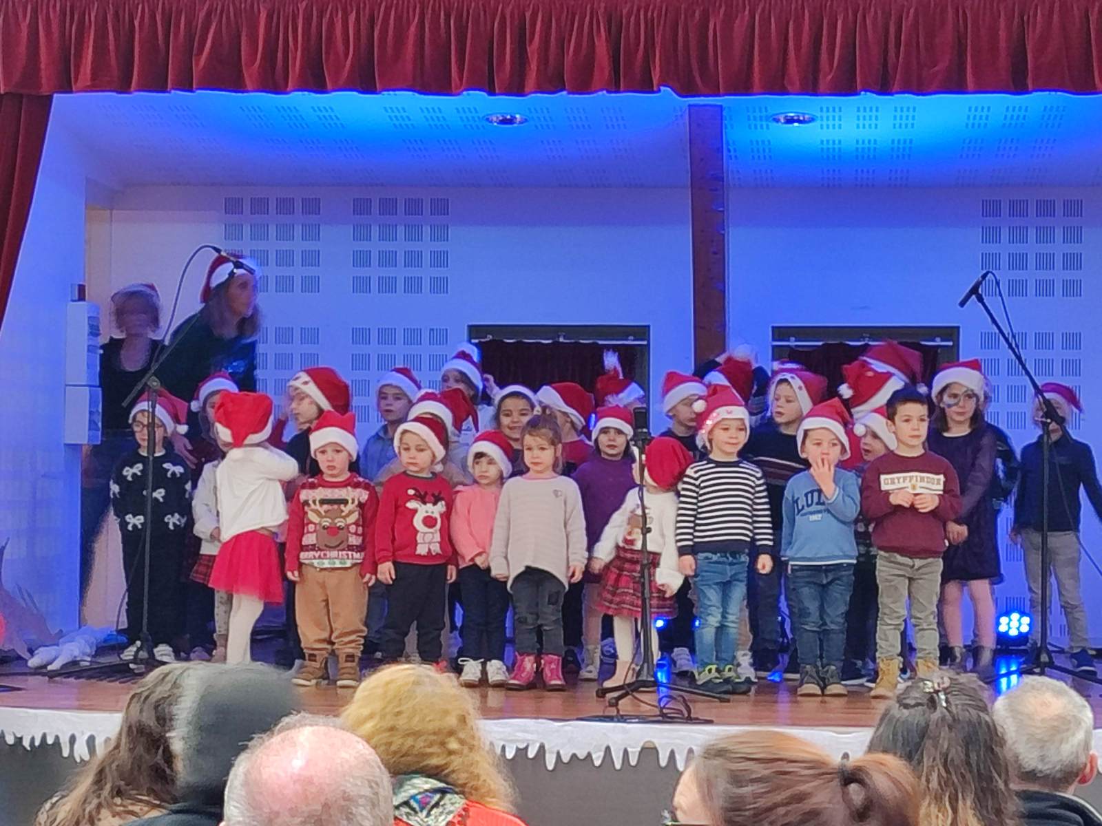 Le vendredi 5 décembre, tous les enfants de l’école, accompagnés de leurs familles, se sont réunis à la salle Beauséjour pour présenter leur spectacle de Noël, haut en couleurs, mêlant chants, danses et saynètes mimées sous la forme d’un théâtre d’ombre. Cette soirée a été un vrai moment de partage avec les parents, grands-parents et amis qui sont venus nombreux pour applaudir les enfants. La soirée s’est prolongée autour d’une tartiflette proposée sur place ou à emporter. Il aura fallu faire preuve d’un peu de patience pour voir le Père-Noël. Celui-ci n’a pas pu nous rejoindre lors de cette soirée mais il est venu faire la connaissance des enfants juste avant les vacances.